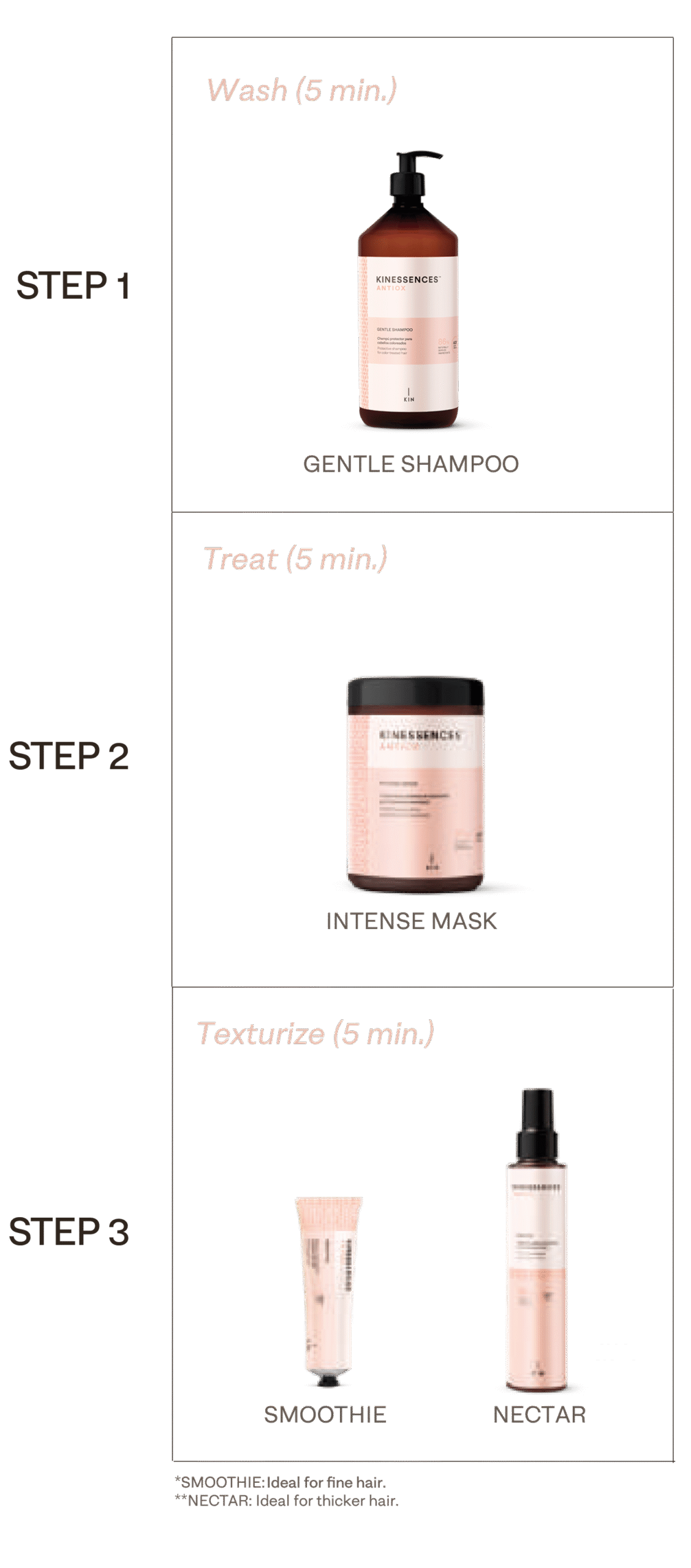 The KINESSENCES™ Antiox Collection is expertly designed to provide advanced protection and a powerful antioxidant effect for color-treated hair. Its primary aim is to care for hair while significantly extending the durability and vibrancy of hair color. Powered by vegan formulas with a high percentage of naturally derived ingredients, KINESSENCES™ Antiox also delivers natural glow and enhanced volume.