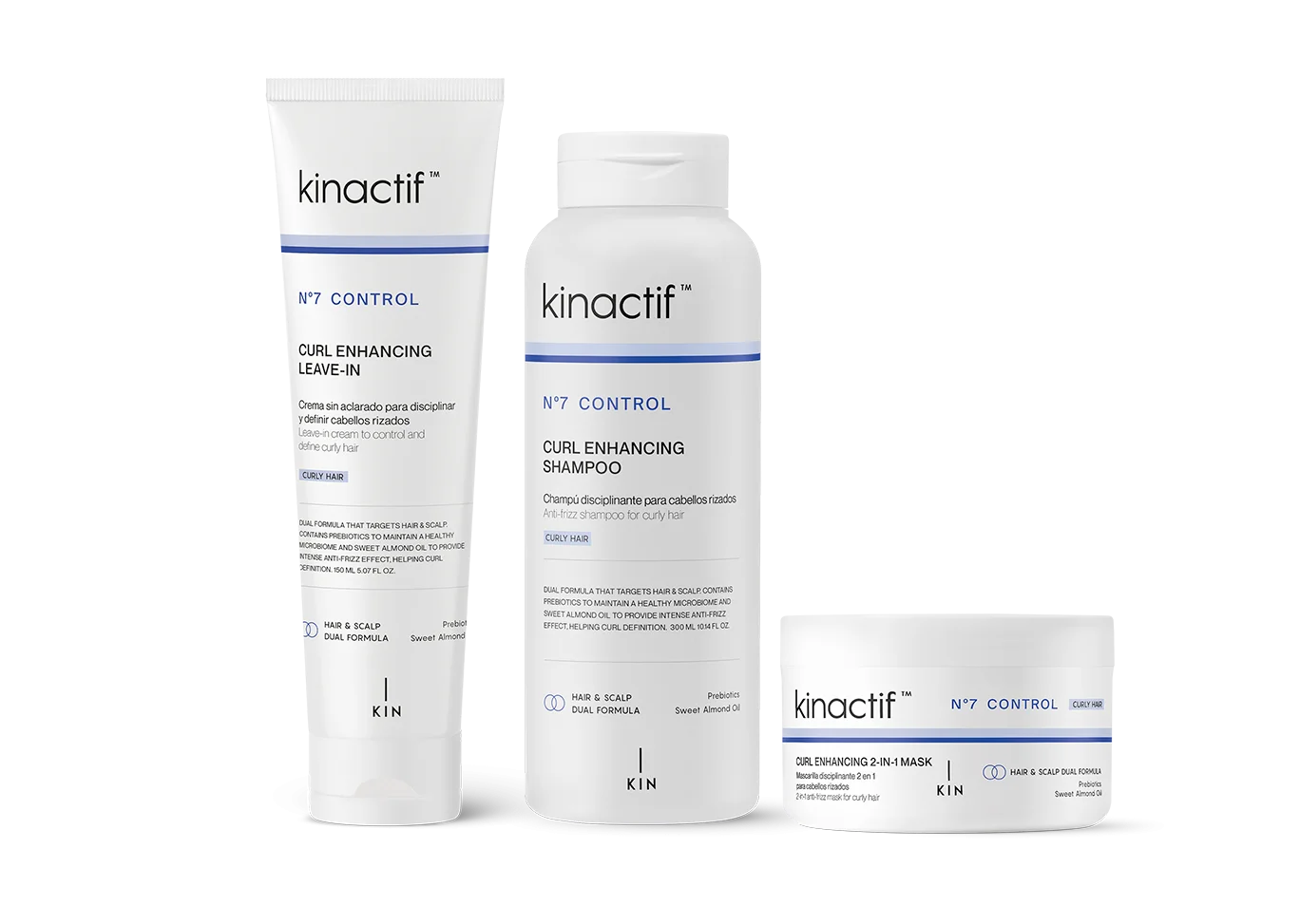 KINACTIF™ N°7 CONTROL fights against frizz on all types of frizzy hair, whether straight or curly. Formulas include ingredients that help control frizz, leaving hair defined, shiny and smooth.