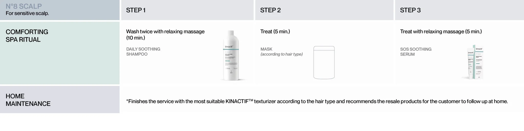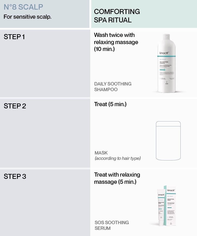KINACTIF™ N°8 SCALP COMFORT acts to help soothe and reduce scalp sensitivity.