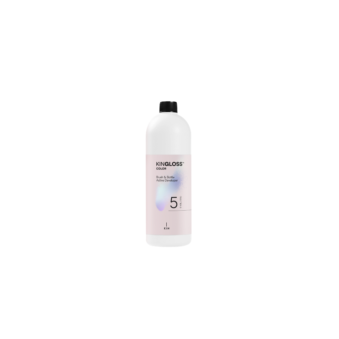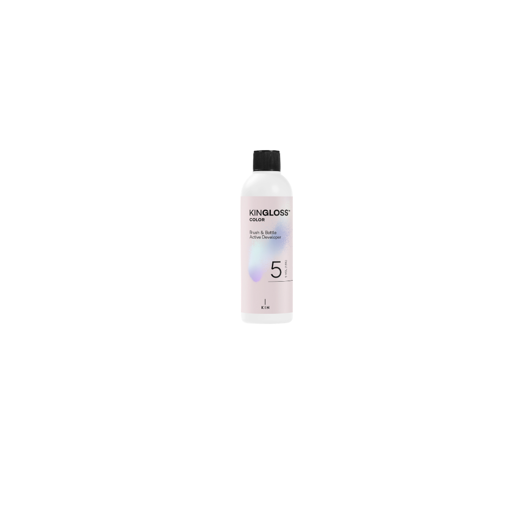 The Brush & Bottle Active Developer is the new low volume activator, exclusive for KINGLOSS™ Color. Its light texture facilitates easy and flexible use; making it suitable for application with a brush or with an applicator bottle. Its exclusive active formula maximizes the color, care and shine results of KINGLOSS™ Color. Available in a 5-volume concentration.